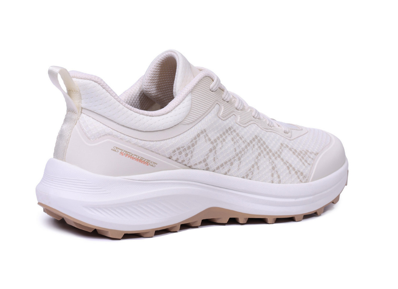 Верх выполнен из бесшовного текстиля, который обеспечивает легкость, комфорт и свободу движений. Отсутствие подкладки делает модель максимально воздушной и удобной, особенно для длительных прогулок и теплой погоды. Материал хорошо адаптируется к форме стопы и способствует естественной вентиляции. Дизайн кроссовок отсылает к силуэтам гор: рельефные линии, многослойная структура и фактурная подошва визуально напоминают горные склоны и тропы. Динамичный профиль и массивная форма подчеркивают характер модели, создавая ощущение надежности и устойчивости. Такие кроссовки выглядят современно и выразительно, оставаясь при этом универсальными для города и природы. В пяточной части предусмотрена петля для быстрого и удобного обувания.